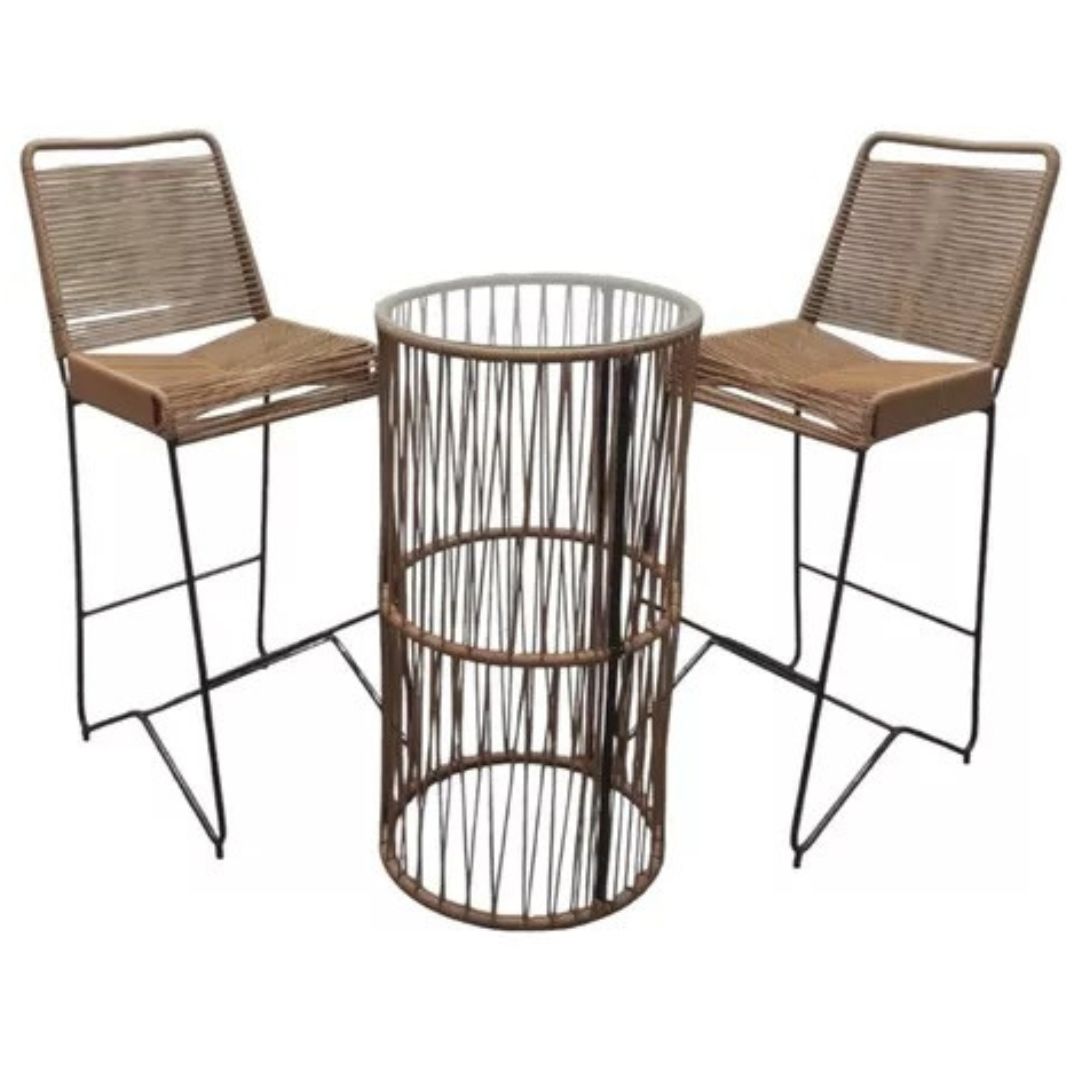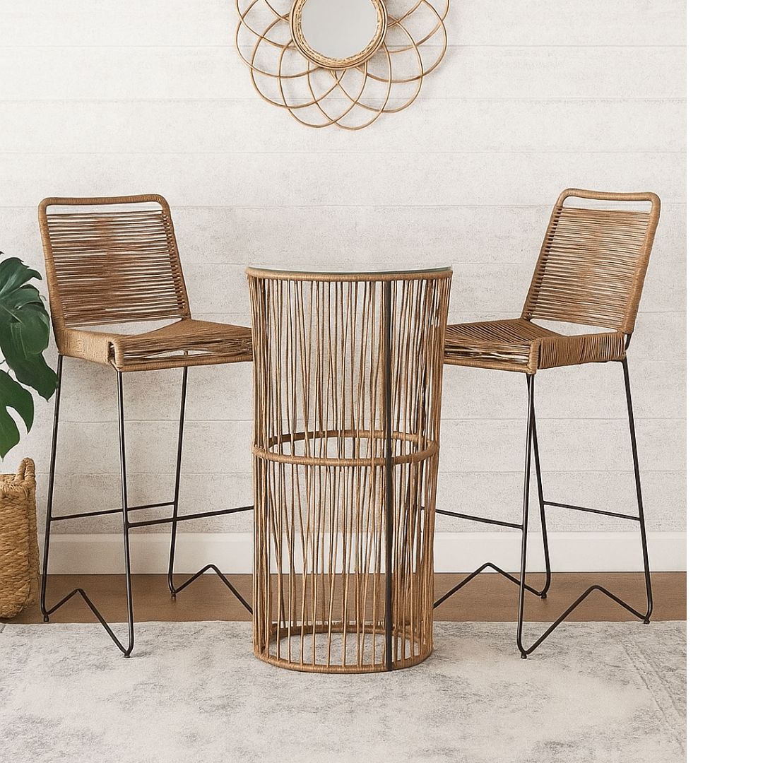2 Banquetas Tulum + 1 Mesa Alta Tambor (Con Vidrio)
