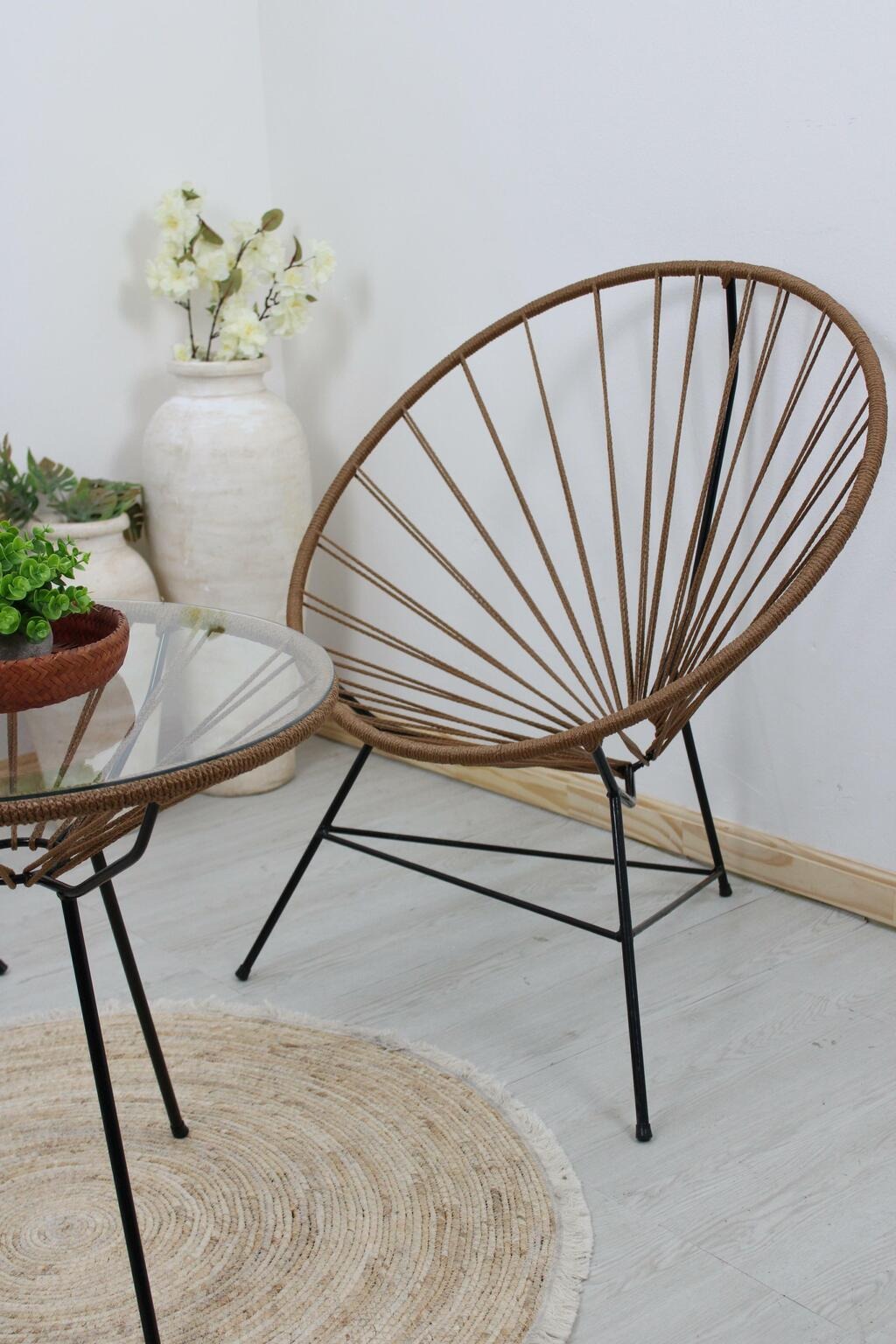 Podes elegir el tejido de soga símil yute en color Negro o Marron.